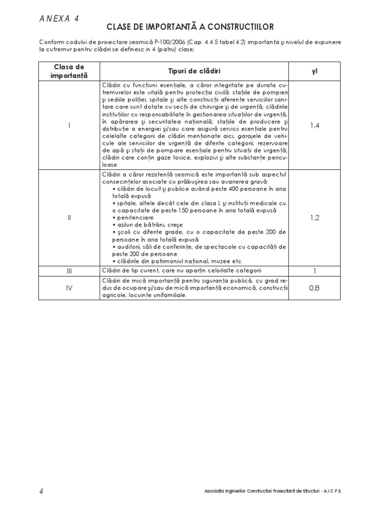 Clasa de importanta a constructiilor cuprinde ca principale două aspecte: