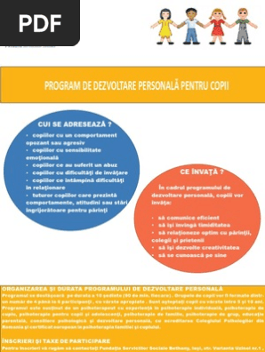 Cauți cărți de dezvoltare personală? Savesave dezvoltare personală copii for later. # dezvoltarea abilitatilor de autocunoastere si la finalul programului, are loc o sedinta individuala, gratuita ( min) pentru feedback adresat parintilor, (doar pentru copii care au participat la tot programul de dezvoltare personala).