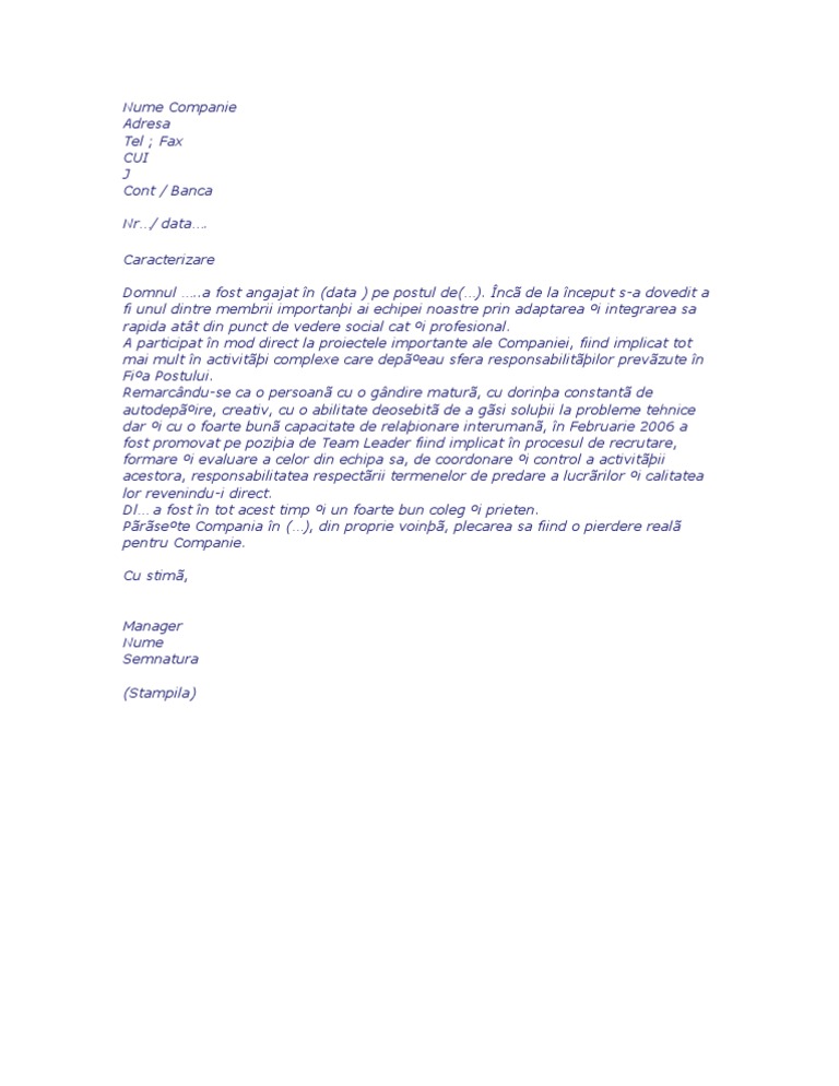 Acte documente sabloane mostre imagini si formulare completate sau necompletate necesare tuturor cv scrisori contracte cereri caracterizare de la ultimul loc de munca mai jos o sa aveti mai multe rezultate pentru cautarea caracterizare de la ultimul loc de munca. Experiența de muncă de la 1 an. Candidatii la locuri de munca în iasi trebuie sa prezinte un grad înalt de pregatire profesionala si un nivel de educatie adecvat.