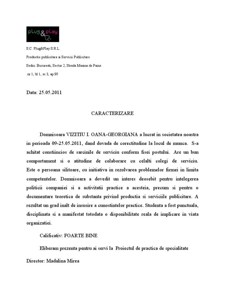 8,482 likes · 23 talking about this. Încă ești în căutarea unui loc de muncă sau poate cauți angajați pentru firma ta? Caracterizare subsemnata stef mariana in calitate de sef de schimb in cadrul firmei sc.
