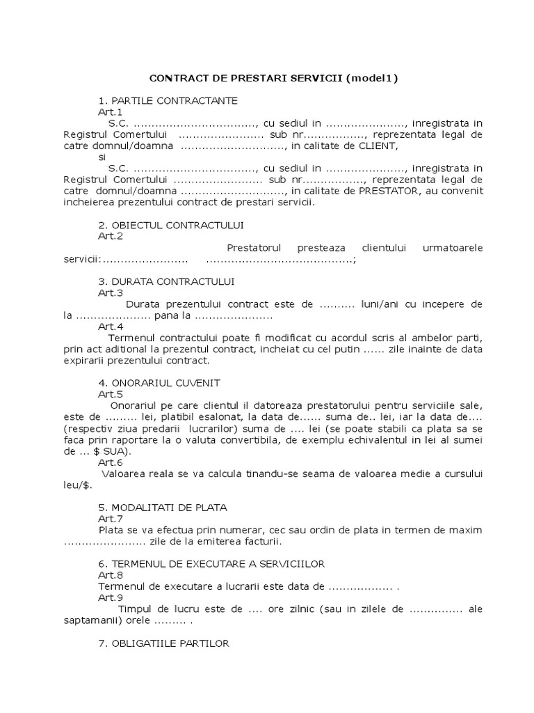 Este baza succesului tău în online model contract prestari servicii. Lista conţine modele de contracte precum: